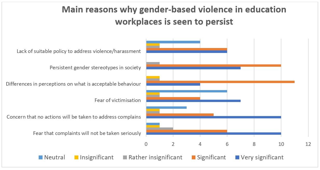 According to an EU-wide study on violence against women by the European Union Fundamental Rights Agency (FRA), one in three women in the EU has experienced physical and/or sexual violence since she was 15 years old. ETUCE actively and continuously supports its member organisations in preventing and combatting gender-based violence and harassment in the education sector. A revised ETUCE Gender Equality Action Plan, designed as part of our project'Empowering education trade unions to address gender equality in the teaching profession through social dialogue', contains a chapter on gender-based violence and harassment which offers trade unions the necessary methods and tools to address the problem in their own countries.