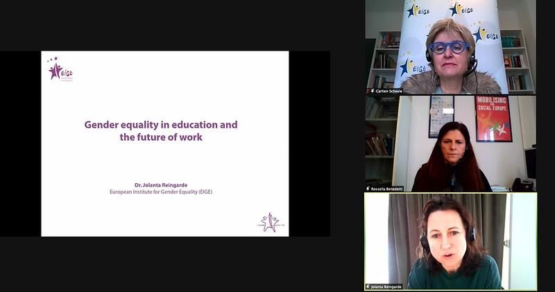 Развивая мероприятия и инициативы, осуществляемые в последнее время ETUCE в сфере равенства возможностей на уровне ЕС, участники заседания сосредоточились на предметном обсуждении таких тем, как гендерное равенство в образовании и будущее труда. Директор Европейского института гендерного равенства (ЕИГР) Карлин Шиле представила результаты новейших исследований ЕИГРпо теме гендерного равенства в образовании. Говоря об основных гендерных проблемах в образовании, руководитель группы ЕИГР по исследованиям и статистике Иоланда Райнгард подчеркнула упорно сохраняющуюся гендерную разницу в зарплатах, с которой сталкиваются женщины, существенное гендерное неравенство при выборе специальности и приобретении цифровых навыков (усиливающееся с возрастом), а также гендерные аспекты воздействия пандемии COVID-19 на уровни занятости, неустойчивую занятость и обязанности по заботе и уходу. Кроме этого, ЕИГР скоро опубликует новое исследование«Гендерное равенство и социально-экономические последствия кризиса COVID-19». Участники обменялись примерами национального опыта реализации Плана действий ETUCE в области гендерного равенства. Говоря о передовом опыте, членские организации из Великобритании, Германии, Грузии, Ирландии, Италии, Нидерландов и Франции поделились примерами диалога с правительством, кампаний, создания специальных структур по вопросам равенства, документирования, планов действий и предоставления юридической помощи для борьбы с гендерным насилием, преодоления гендерных стереотипов и недостаточного женского представительства на руководящих должностях.