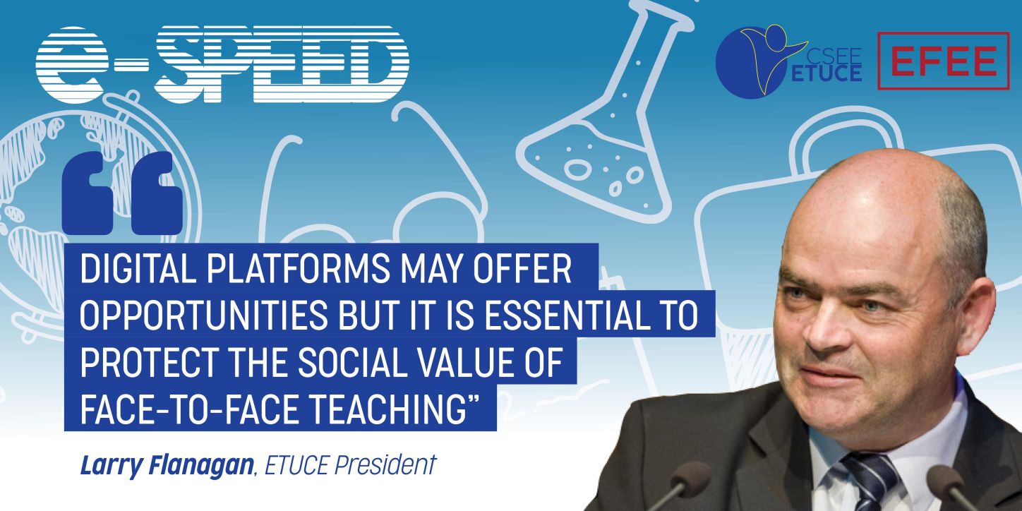 Education trade unions and education employers’ representatives from across Europe met on 14-15 October 2021 for the hybrid final conference of the joint social dialogue project ‘ e-Speed – European Social Partners in Education embracing Digitalisation: Challenges and opportunities for European Trade Unions and Employer organisations in the digital era’ which aims at ensur ing future-proof inclusive and quality education for all.