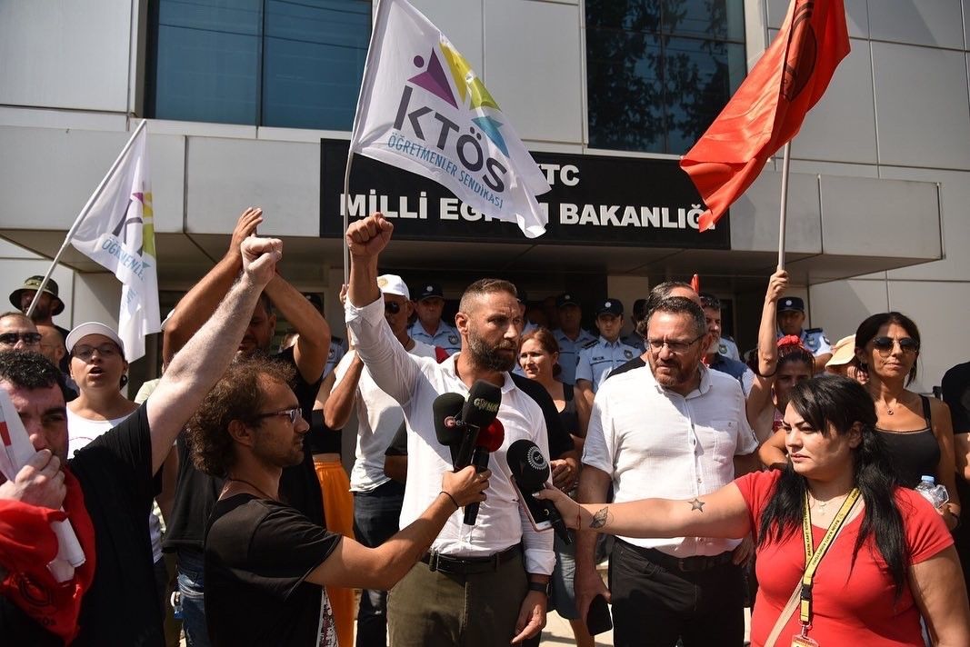 On 2 August 2022, KTÖS and KTOEÖS, together with their affiliates, gathered in front of the Ministry of Education in Nicosia in the joint protest action " we will not give back our rights".