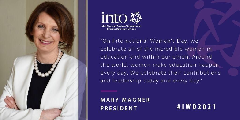 To celebrate the International Women’s Day 2021, the Irish National Teachers’ Organisation made audiogram messages from senior female INTO leaders (President Mary Magner & Deputy General Secretary Designate Deirdre O'Connor) in the morning & evening. It also publishes social media posts highlighting historical female INTO leaders (Margaret Skinnider, Catherine Mahon etc)
