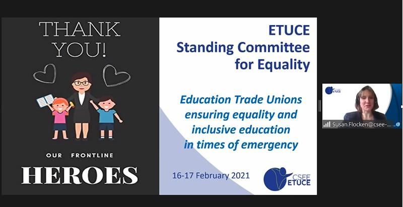 Les 16 et 17 février, plus de 60 expert·e·s en matière d'égalité de toute l'Europe se sont réuni·e·s en ligne pour la réunion annuelle du Comité permanent pour l’égalité du CSEE, l'organe consultatif du Comité du CSEE, afin d’échanger des idées et des expériences sur la promotion de l'égalité des chances dans l'éducation. En réponse à la récente crise sanitaire, sociale et économique causée par la pandémie de COVID-19, qui expose et amplifie les inégalités dans l'éducation, la réunion de cette année s'est concentrée sur le rôle des syndicats de l'enseignement pour garantir l'égalité et l'éducation inclusive en période de crise.