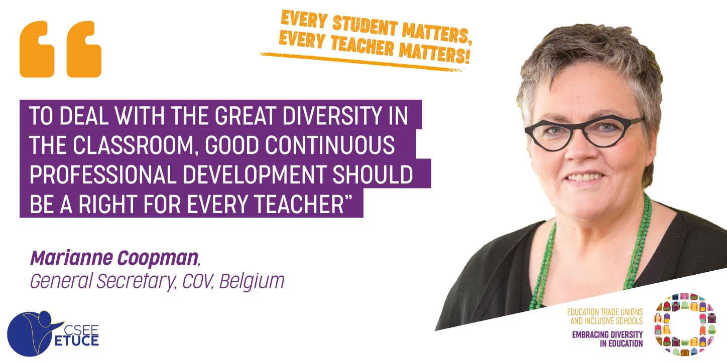 Une diversité plus grande que jamais parmi les apprenant·e·s et le personnel de l’éducation d'Europe requiert une attention particulière pour garantir l'égalité et l'inclusion dans l'éducation. Cette réalité est plus importante que jamais pour les syndicats de l'enseignement. C'est la raison pour laquelle, sous le slogan « Chaque apprenant·e compte, chaque enseignant·e compte», le projet renforce les capacités pour permettre aux syndicats de l'enseignement de préparer leurs membres à faire face aux nombreuses formes de diversité qu'ils rencontrent en classe et dans la société : socioéconomiques, culturelles, linguistiques et plus encore. Le CSEE et ses organisations membres visent à soutenir le personnel de l’éducation dans la création d'environnements d'apprentissage inclusifs où chaque étudiant·e et enseignan·e peut réaliser son plein potentiel.